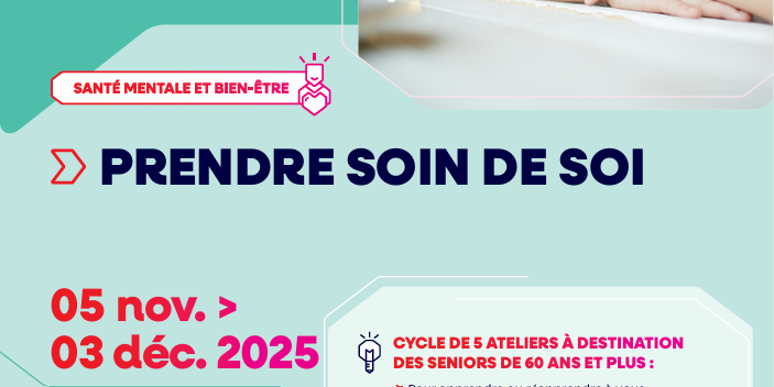 Un cycle de 5 ateliers pour prendre soin de soi du 5 Novembre au 3 décembre.